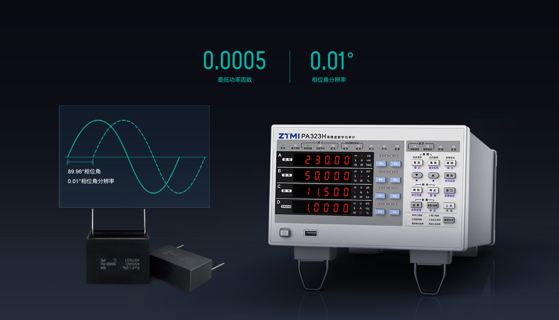 PA300系列數(shù)字功率計采用100MHz同步時鐘,相角分辨率高達0.01°。即使在低至0.0005的功率因數(shù)下仍能保證0.1%的高測量精度。