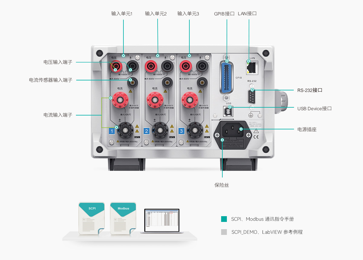 通訊接口是數(shù)據(jù)通訊的硬件基礎(chǔ)。PA300系列功率計標配LAN、GPIB、RS-232和USB Device接口,兼容SCPI、Modbus兩種通訊指令,保證了測試設(shè)備在自動化產(chǎn)線測試的系統(tǒng)集成中具備良好的兼容性。