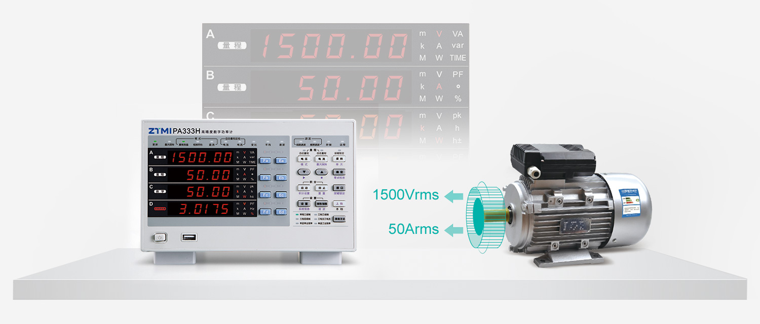 PA333H功率計采用了雙分流器技術,它無需使用外部傳感器便可以直接測量高達1500V的電壓、50A的電流,可輕松滿足高達75kW的大功率測試要求。