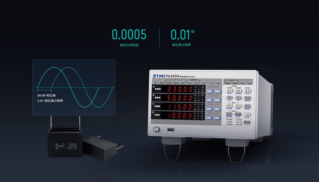 PA300系列數字功率計采用100MHz同步時鐘,相角分辨率高達0.01°。即使在低至0.0005的功率因數下仍能保證0.1%的高測量精度。