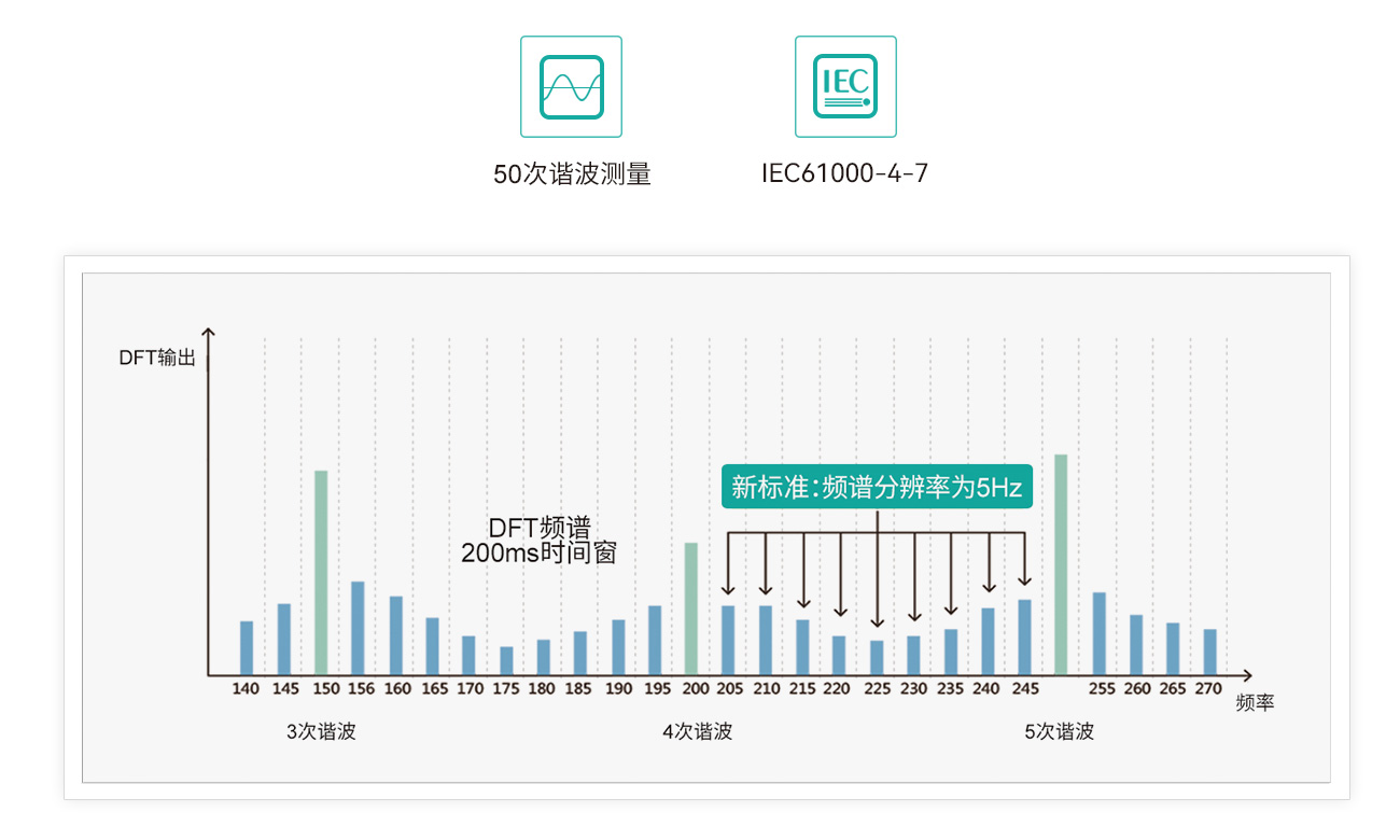 PA300系列數字功率計可進行完全符合諧波測量國際標準IEC61000-4-7的測定,根據基波的頻率,最高可測量至50次諧波。