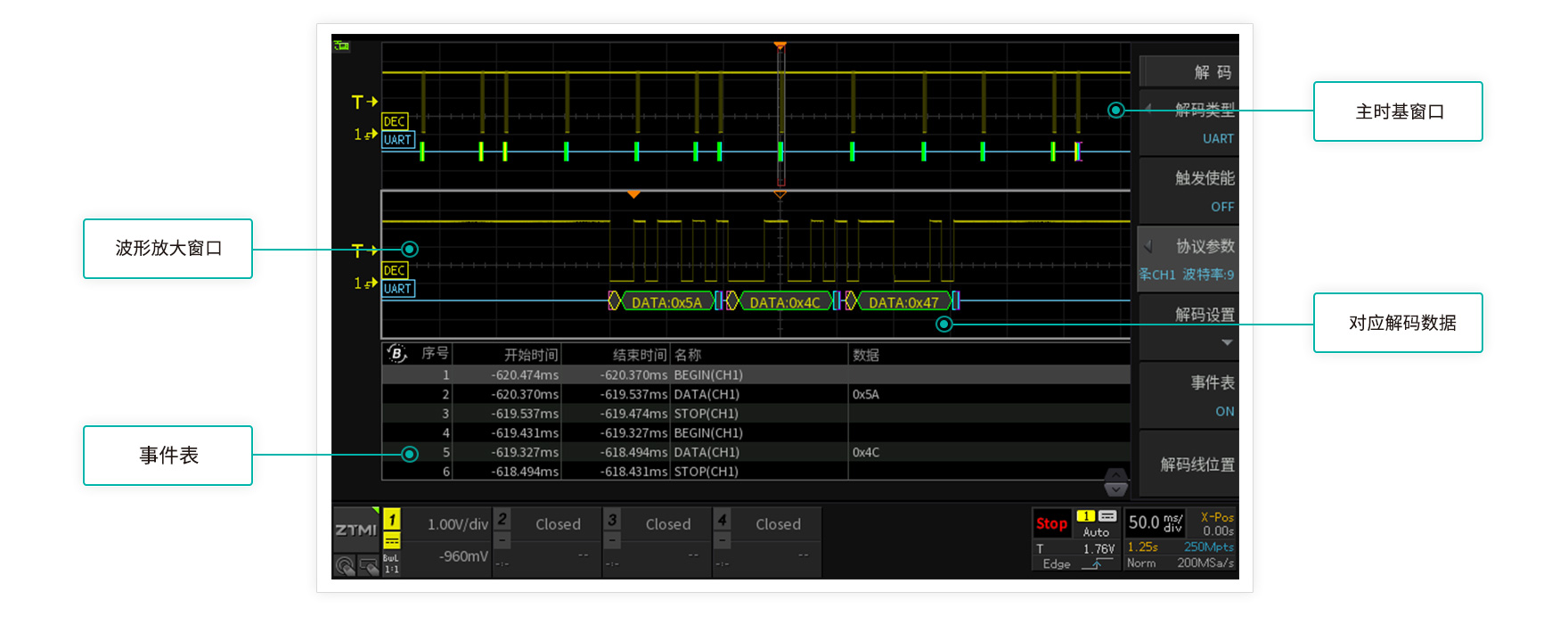 在調試協議信號的時候,不僅需要觀測協議波形,還要將波形解碼成對應的數據。但一直以來各大品牌示波器的協議解碼功能都要付費選配的,而且只有寥寥幾種。ZDS3000/2000B系列示波器基于客戶需求免費配備了41/29種協議解碼,CAN、LIN、IIC、SPI、UART、USB、PS/2、DALI、Wiegand、1-Wire、DS18B20、HDQ、 SD_SPI、SD_SD、IrDA、Manchester、DiffManche、Miller、DHT11、 SHT11、 NEC、RC5、RC6、FlexRay等,除此之外,ZDS3000/2000B系列示波器還免費配備了CAN FD協議解碼,再一次定義了200M示波器!