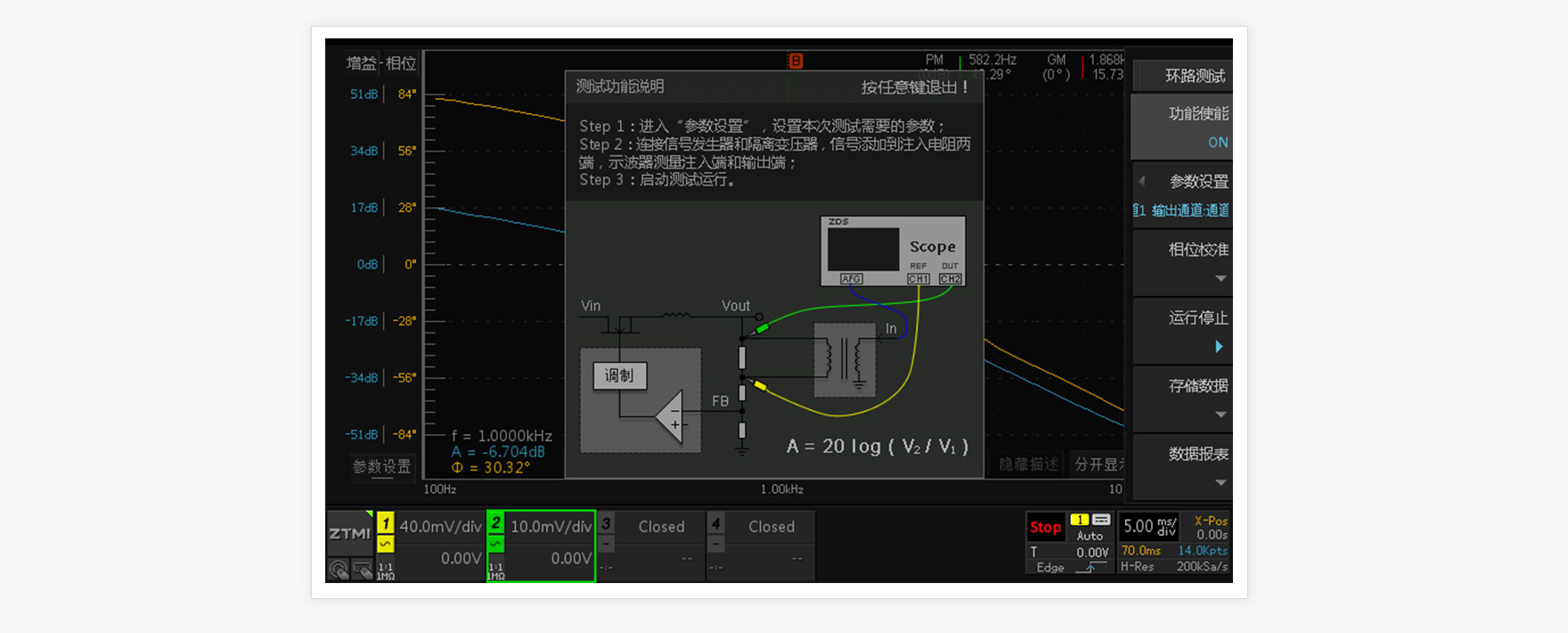 穩定的反饋環路對開關電源來說是非常重要的,如果沒有足夠的相位裕度和幅值裕度,電源的動態性能就會很差或者出現輸出振蕩。伯德圖可以直觀呈現負反饋系統的增益、相位的頻率響應曲線,通過分析系統的增益余量與相位余量,可以判斷控制系統是否穩定。